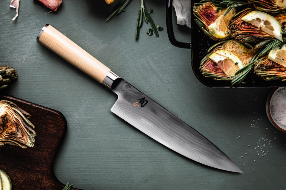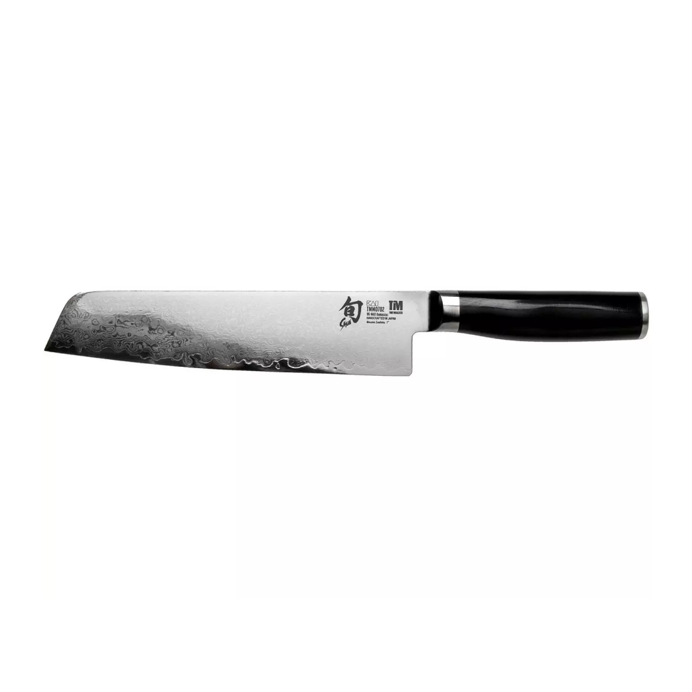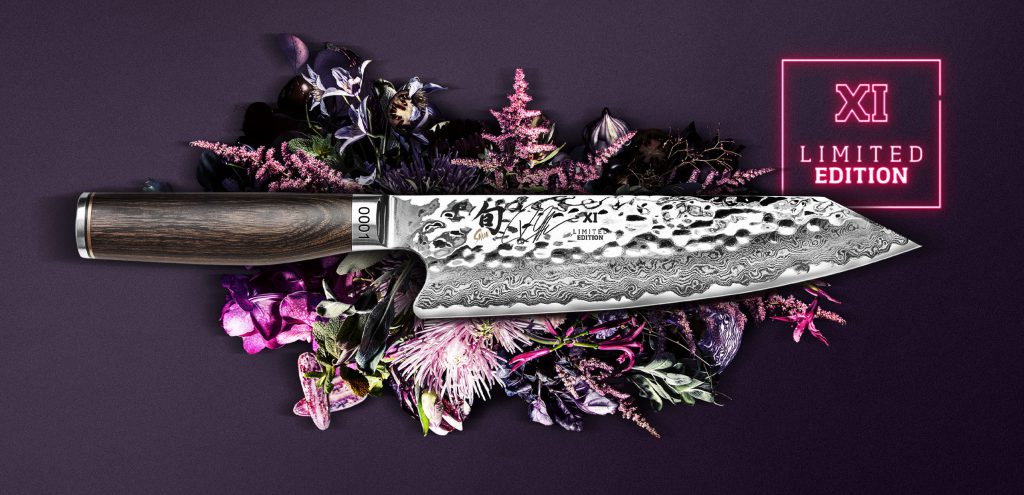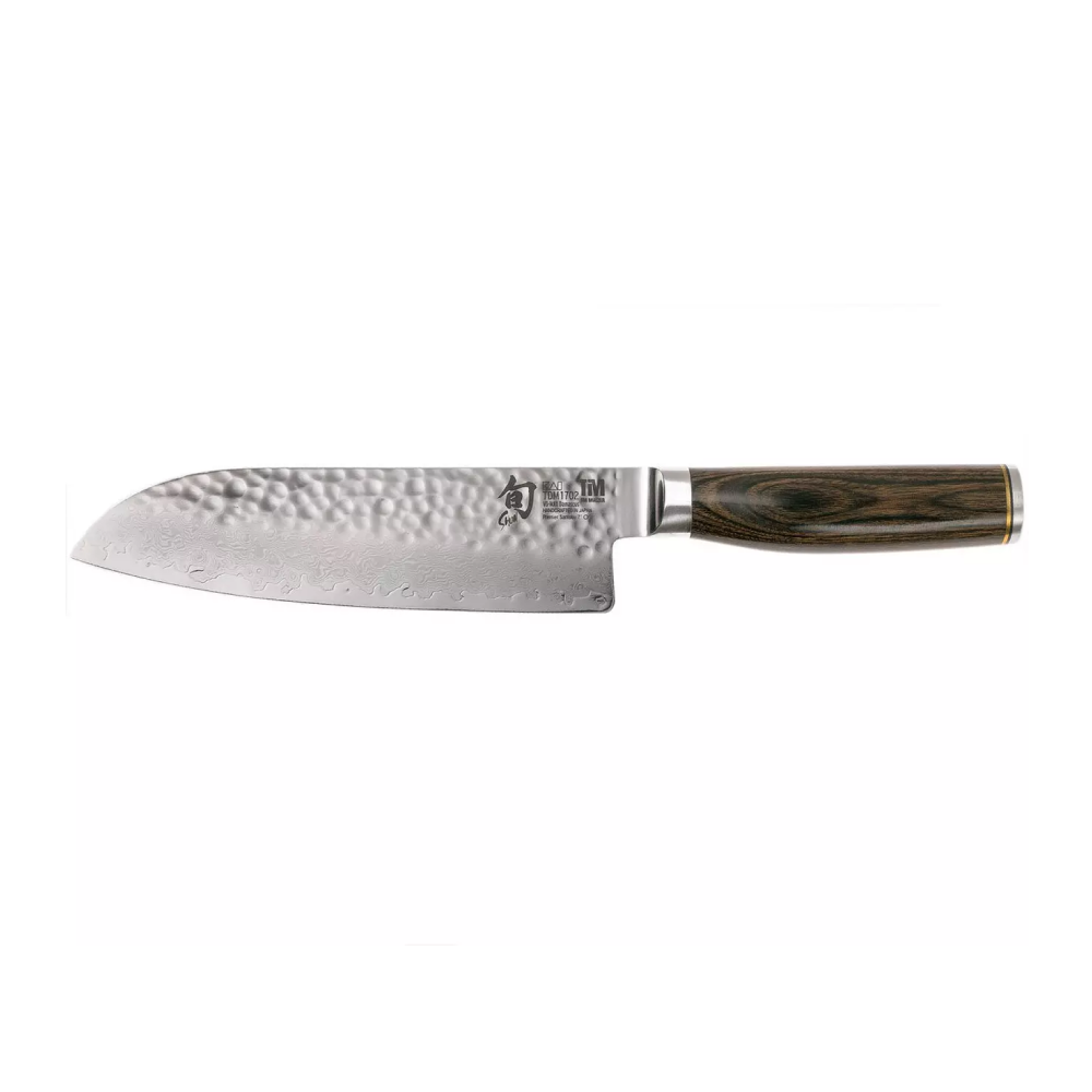 The Shun Premier Tim Mälzer Series has been tailored specifically to the needs and requirements of professional chefs. In this premium series, the high-quality material properties of the well-known Shun Classic Series are combined with an entirely novel and commanding overall appearance. The blade is divided into three different textures: The blade’s back down to its middle has been hammered to create a surface known as Tsuchime.